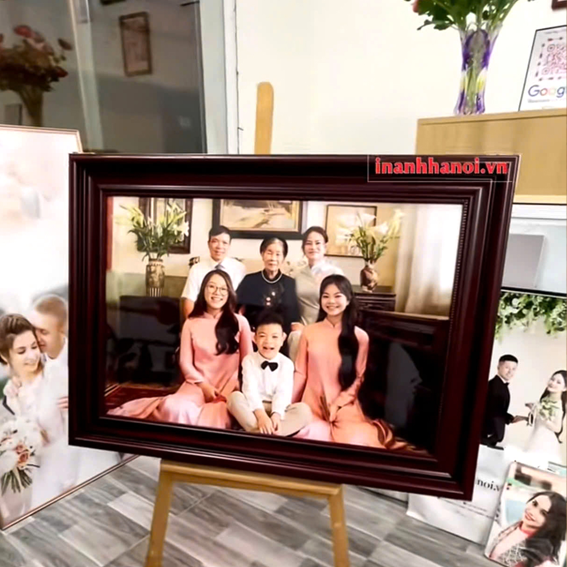 Ảnh in ép gỗ phóng to và lắp khung gỗ cao cấp treo tường được in laser lab bằng giấy in chính hãng Fujifilm bền màu trên 50 năm,được ép các chất liệu bề mặt :