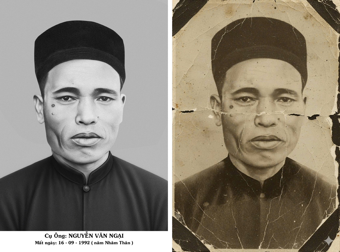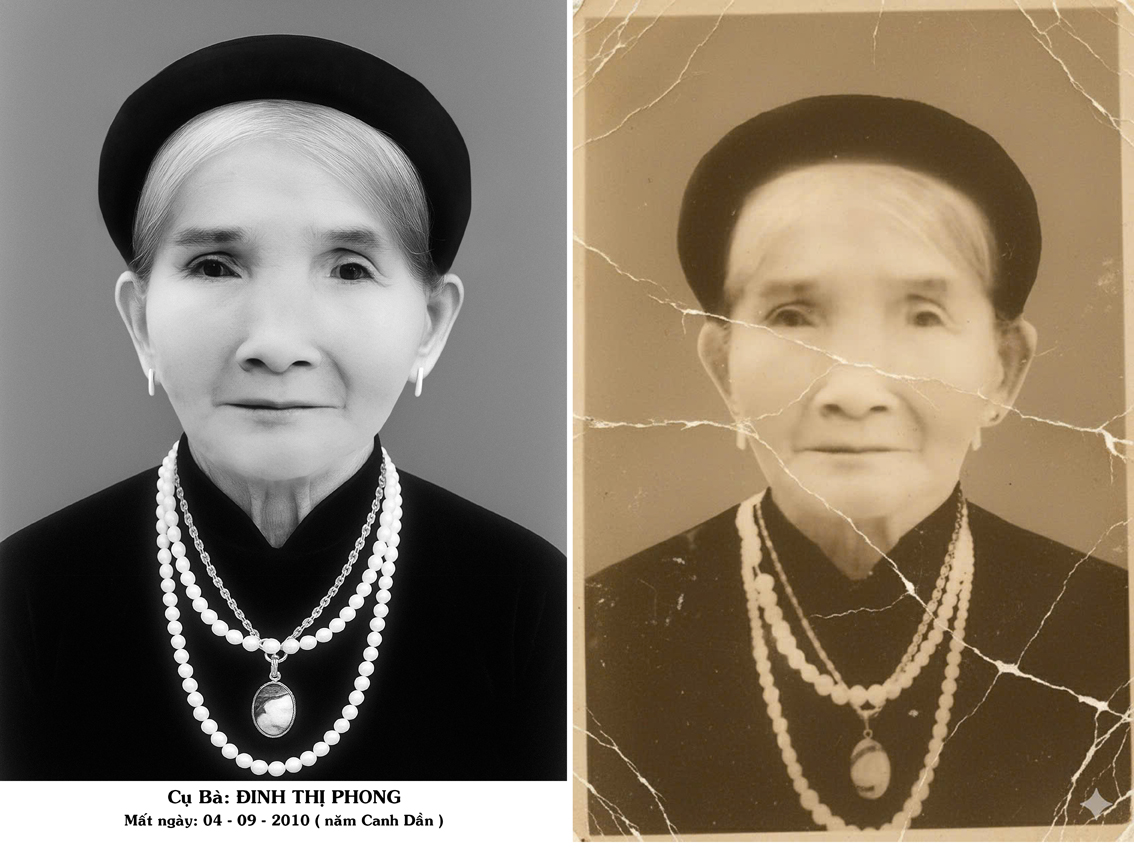 Sử dụng công nghệ AI kết hợp kỹ thuật Photoshop thủ công tỉ mỉ, chúng tôi phục hồi từ ảnh mờ, rách, ố vàng, thậm chí chỉ còn một phần khuôn mặt. -
