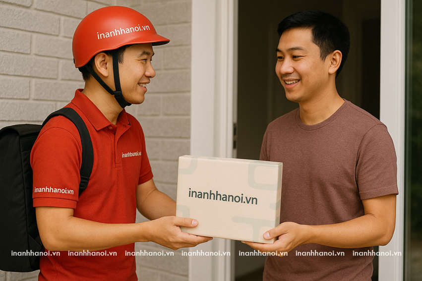 Nhân viên inanhhanoi.vn giao hàng đến tay khách hàng