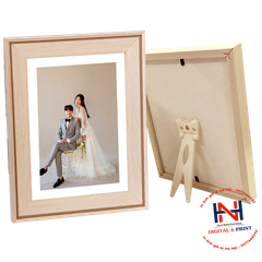 Khung ảnh gỗ để bàn được in bằng giấy in chính hãng Fujifilm bền màu trên 50 năm , được ép các chất liệu bề mặt :
