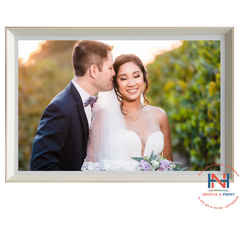 Bộ Khung ảnh gỗ phóng to treo tường được in laser lab bằng giấy in chính hãng Fujifilm bền màu trên 50 năm,được ép các chất liệu bề mặt :