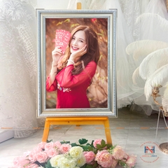 Khung ảnh gỗ phóng to treo tường được in bằng giấy in chính hãng Fujifilm bền màu trên 50 năm , được ép các chất liệu bề mặt :