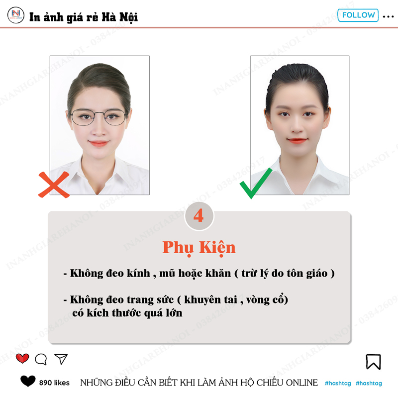 Không cười khi chụp ảnh, mắt mở, nhìn thẳng và không nhìn nghiêng sang hai bên.