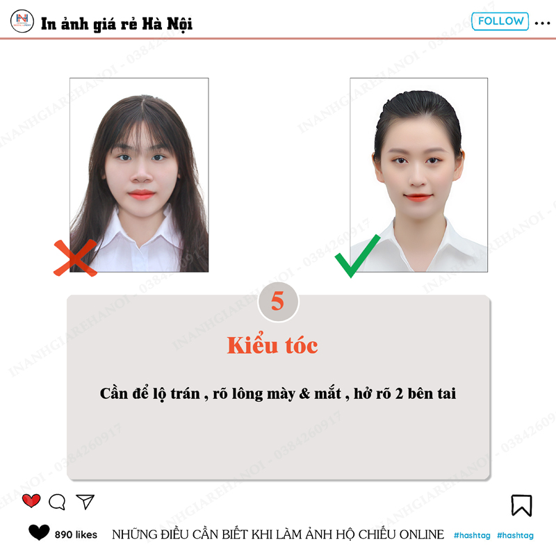 Kiểu tóc gọn gàng, không xõa tóc mái trước mặt, đảm bảo để lộ trán và 2 lỗ tai.