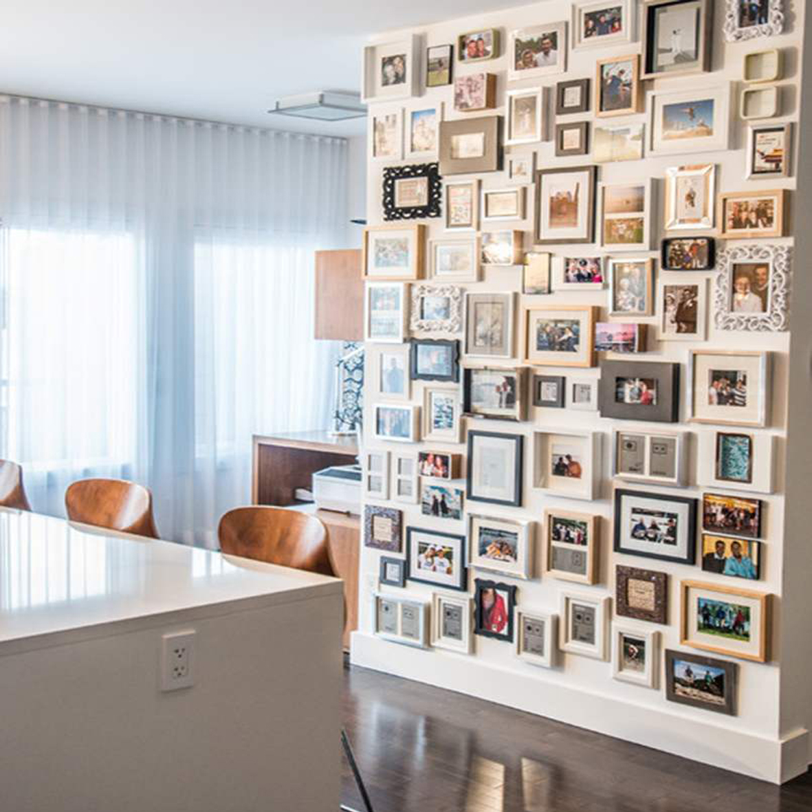 - Bố cục: Tạo các cụm ảnh nhỏ hoặc một bức tường ảnh lớn với nhiều kích thước và hình dạng khác nhau.