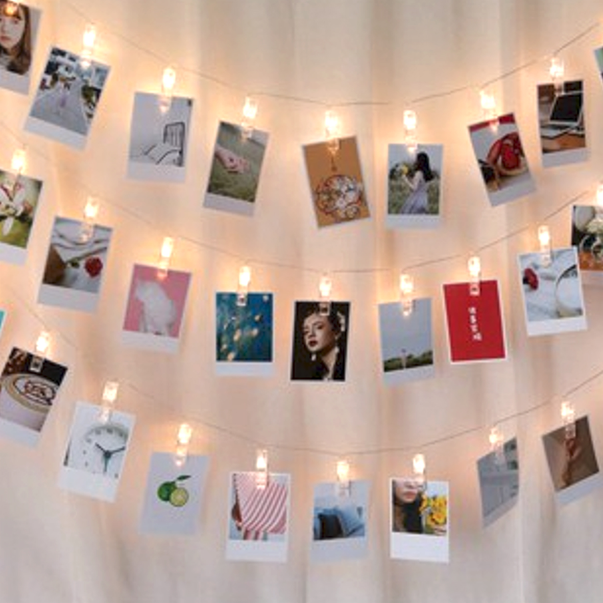 - Đèn LED: Sử dụng đèn LED có kẹp ảnh tích hợp, treo ảnh và tạo ánh sáng lung linh cho không gian.